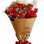 Ribbon: The bouquet is tied at the bottom with a simple white or silver ribbon, featuring elegant cascading tails.